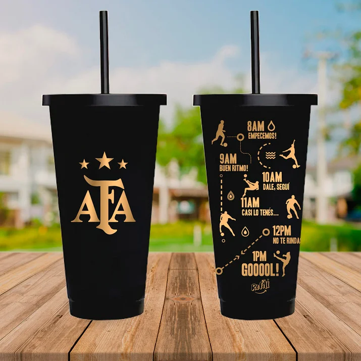 Fabricado en material 100% reciclable y libre de BPA, une tu apoyo al fútbol argentino con la conciencia ambiental. Su práctico sorbete integrado facilita la hidratación durante partidos, reuniones o uso diario, mientras el diseño AFA en contraste con el negro le da un toque de exclusividad.