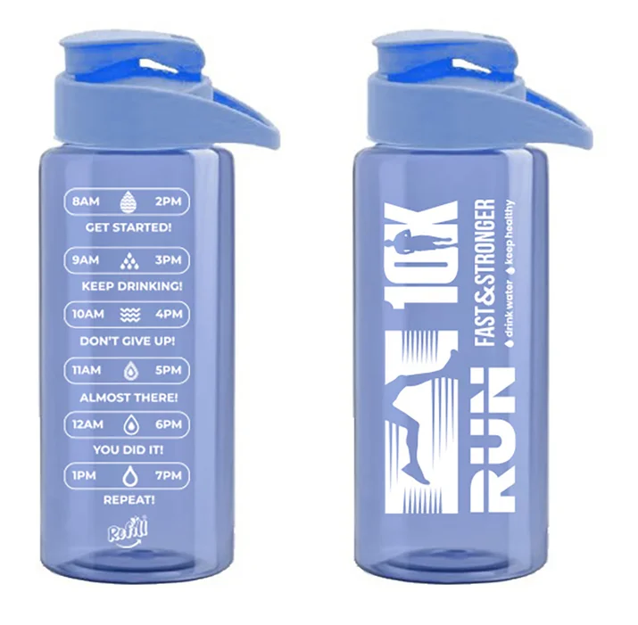 Fabricada en plástico resistente y libre de BPA, garantiza durabilidad y cuidado de tu salud. Su tapa rebatible permite un acceso fácil y seguro a tu bebida, mientras que los mensajes motivacionales en su diseño vintage celeste te acompañan en cada logro deportivo.