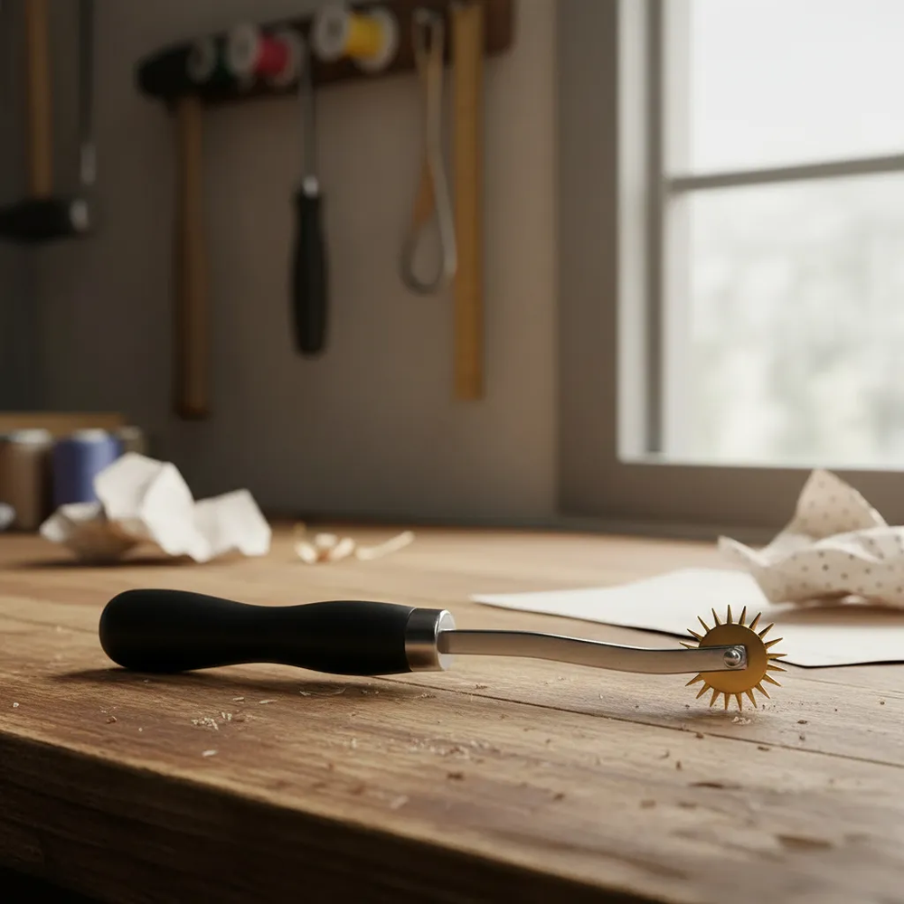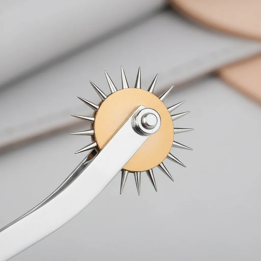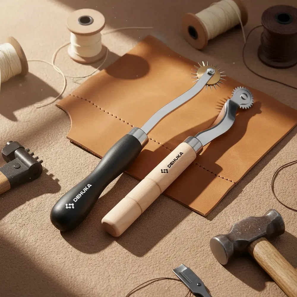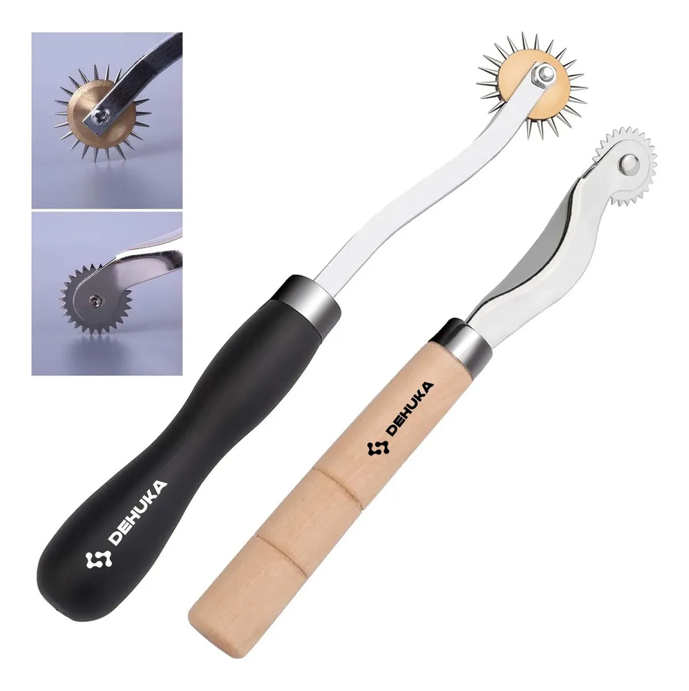 Logra costuras profesionales y perfectamente alineadas con el Marcador de Puntadas Dehuka para Talabartería. Esta herramienta especializada cuenta con una rueda dentada de acero de alta calidad que marca puntos uniformes en cuero, tela y otros materiales, guiándote para realizar perforaciones equidistantes y crear costuras simétricas y estéticamente perfectas.