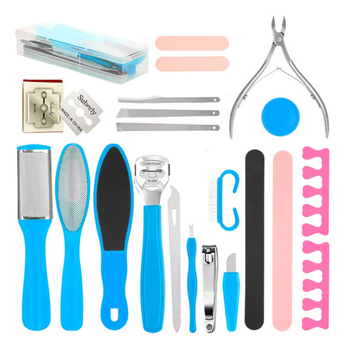 Fabricado con materiales de primera calidad, resistentes y fáciles de esterilizar, incluye desde herramientas básicas hasta instrumentos especializados. Encontrarás cortauñas diferenciados para manos y pies, un empujador/removedor de cutículas, limas de diferentes granulados (acero, suave, arena doble) para dar forma y pulir, y un rascador de callos eficaz. Además, herramientas de precisión como cuchillos para trabajos detallados (adz, raspado, inclinado), una pinza para piel muerta y un cepillo de limpieza con mango completan el set profesional.
