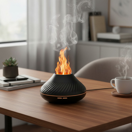 Transforma cualquier ambiente en un santuario de calma y sensación acogedora con el Difusor Aromático Dehuka con Efecto de Llama. Este innovador dispositivo combina las beneficiosas propiedades de la aromaterapia con un realista y relajante efecto visual de llama danzante creado por luces LED, ofreciendo una experiencia multisensorial perfecta para relajarse, meditar o crear un ambiente único.