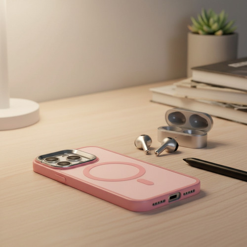 Su soporte ajustable integrado te permite posicionar tu iPhone en el ángulo perfecto para ver videos, hacer videollamadas, seguir recetas en la cocina o trabajar de manera cómoda sin necesidad de usar las manos. Además, incorpora imanes de alta precisión compatibles con MagSafe, lo que te permite acoplar de forma segura y perfectamente alineada cargadores inalámbricos, soportes para auto y otros accesorios del ecosistema Apple, sin necesidad de quitar la funda.