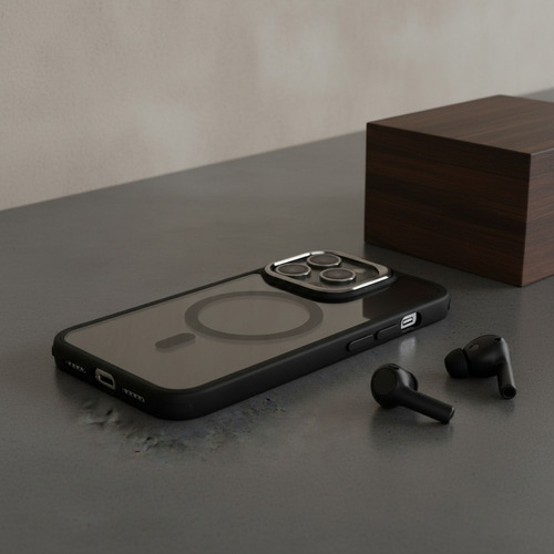 Construida con materiales plásticos de calidad, su estructura está pensada para absorber impactos y proteger tu iPhone de las caídas y rasguños del día a día, sin sacrificar un diseño delgado y elegante. El acabado cromado en negro le otorga un look sofisticado y profesional que complementa la estética de tu iPhone 16 Pro.