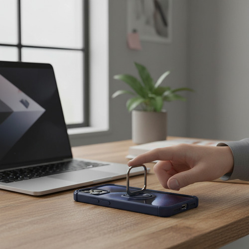 Experimenta la comodidad integrada. El soporte (stand) ajustable incorporado te permite colocar tu iPhone en el ángulo perfecto para ver contenido, realizar videollamadas o trabajar de forma práctica, liberando tus manos para otras tareas. Además, gracias a su anillo magnético compatible con MagSafe, podrás utilizar todos los cargadores inalámbricos y accesorios magnéticos de forma inmediata, segura y eficiente, sin necesidad de quitar la funda y sin perder potencia de carga.