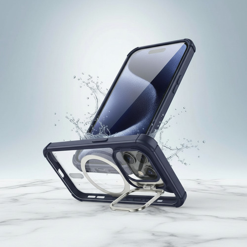 Potencia y protege tu iPhone 15 Pro con la Funda Dehuka Cromada, el accesorio que combina un diseño cromado en azul oscuro de alto impacto con una protección robusta y funcionalidades inteligentes. Diseñada específicamente para modelos Pro, esta funda integra un soporte ajustable y compatibilidad total con MagSafe en un diseño delgado y elegante.