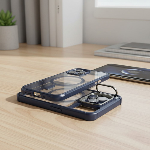 Funcionalidad que se adapta a ti. El soporte (stand) integrado y ajustable transforma tu teléfono en una estación versátil para ver contenido, hacer videollamadas familiares o seguir recetas de cocina de manera práctica y liberando tus manos. Junto con esto, su anillo magnético compatible con MagSafe asegura una conexión instantánea y estable con cargadores inalámbricos, soportes para auto y otros accesorios, sin sacrificar la protección ni la estética.