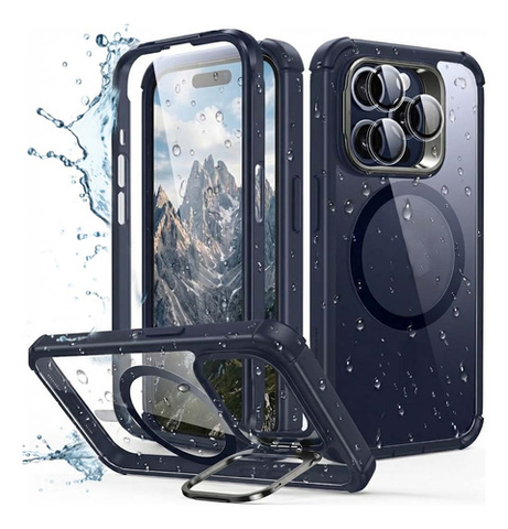 Maximiza la experiencia con tu iPhone 15 Pro con la Funda Dehuka Cromada en azul oscuro. Este accesorio esencial fusiona un diseño cromado de alto impacto con una protección confiable y características de uso diario como un soporte integrado y compatibilidad magnética, diseñado específicamente para modelos Pro.