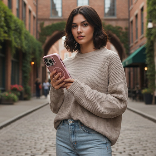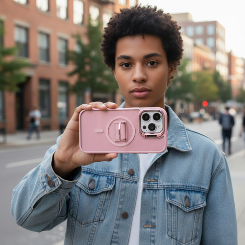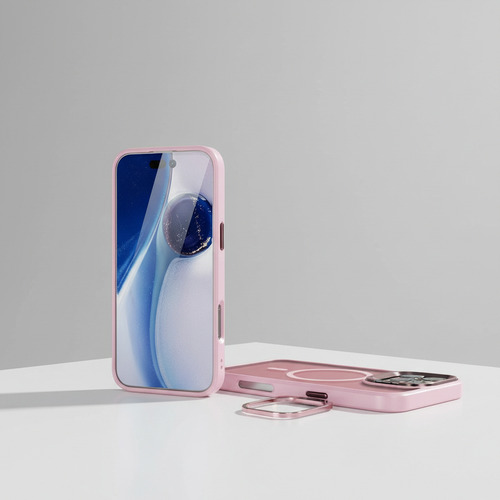 Aumenta la utilidad de tu teléfono. El soporte (stand) integrado y ajustable te ofrece la flexibilidad de colocar tu iPhone en el ángulo perfecto para ver series, participar en videollamadas, seguir tutoriales o usar aplicaciones de manera práctica y con las manos libres. Además, gracias a su anillo magnético compatible con MagSafe, podrás conectar de forma instantánea y segura tu cargador inalámbrico, soporte para auto o cualquier otro accesorio magnético sin tener que retirar la funda, garantizando una carga óptima y sin interrupciones.