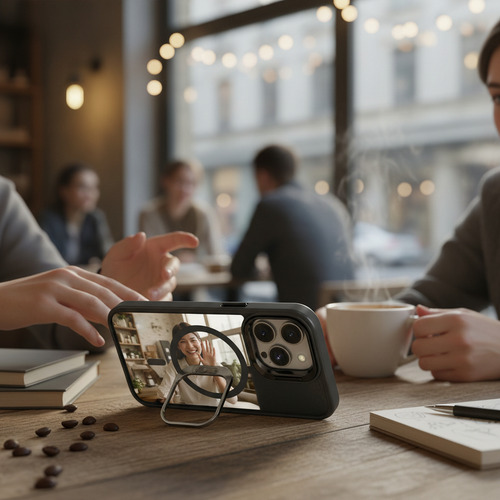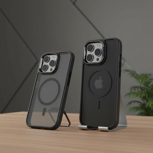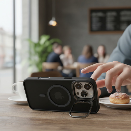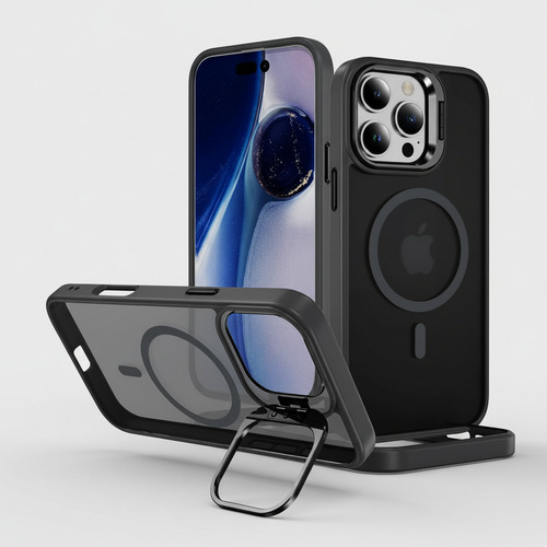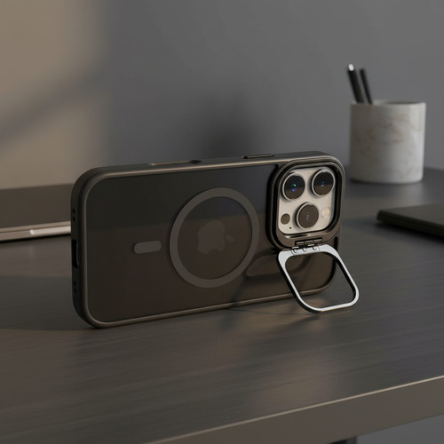 Descubre la comodidad integrada. El soporte (stand) ajustable incorporado te permite colocar tu iPhone en el ángulo perfecto para ver contenido, realizar videollamadas o trabajar de forma práctica, liberando tus manos para otras tareas. Además, gracias a su anillo magnético compatible con MagSafe, podrás utilizar todos los cargadores inalámbricos y accesorios magnéticos de forma inmediata, segura y eficiente, sin necesidad de quitar la funda y sin perder potencia de carga.
