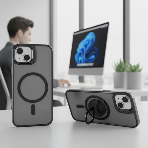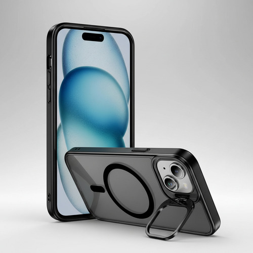 Descubre la comodidad integrada. El soporte (stand) ajustable incorporado te permite colocar tu iPhone en el ángulo perfecto para ver contenido, realizar videollamadas o trabajar de forma práctica, liberando tus manos para otras tareas. Además, gracias a su anillo magnético compatible con MagSafe, podrás utilizar todos los cargadores inalámbricos y accesorios magnéticos de forma inmediata, segura y eficiente, sin necesidad de quitar la funda y sin perder potencia de carga.