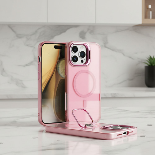 Aumenta la utilidad de tu teléfono. El soporte (stand) integrado y ajustable te ofrece la flexibilidad de colocar tu iPhone en el ángulo perfecto para ver series, participar en videollamadas, seguir tutoriales o usar aplicaciones de manera práctica y con las manos libres. Además, gracias a su anillo magnético compatible con MagSafe, podrás conectar de forma instantánea y segura tu cargador inalámbrico, soporte para auto o cualquier otro accesorio magnético sin tener que retirar la funda, garantizando una carga óptima y sin interrupciones.