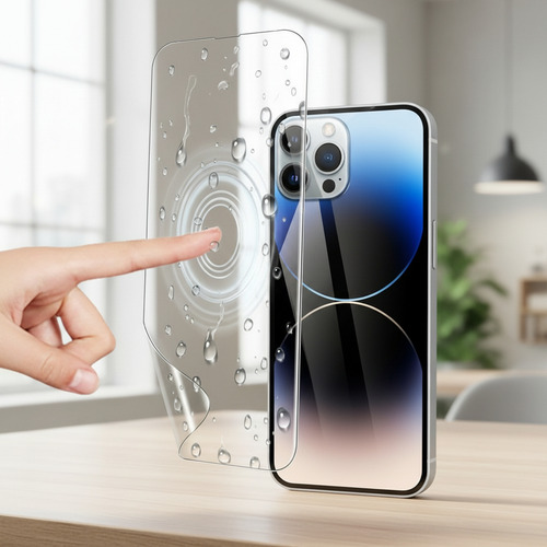 Fabricado en hidrogel 9D de alta elasticidad y claridad óptica, se adapta con precisión a los bordes curvos característicos del iPhone 15 Pro Max, logrando una cobertura total de borde a borde sin burbujas ni levantamientos. Su propiedad regenerativa permite que los microarañazos superficiales desaparezcan con el calor del uso, manteniendo una apariencia impecable.