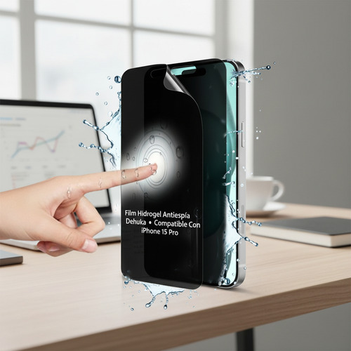 Optimiza la protección y privacidad de tu iPhone 15 Pro con el Film Hidrogel Antiespía Dehuka 9D, diseñado específicamente para el modelo Pro. Este protector combina un filtro de privacidad de última generación con una capa de hidrogel regenerativo de alta calidad, ofreciendo una defensa integral que mantiene la elegancia y el máximo rendimiento de tu dispositivo.