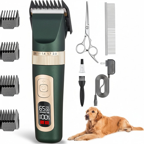Su potente batería de litio de 2000 mAh ofrece hasta 3.5 horas de autonomía continua con una sola carga, suficiente para varias sesiones. La carga es práctica mediante cable USB, compatible con cargadores de pared, computadoras o power banks. El control total está en tus manos: una pantalla LCD digital muestra en tiempo real el nivel de batería y la longitud de corte seleccionada, que puedes ajustar con precisión entre 0.8 mm y 2 mm para adaptarte a cualquier tipo de pelaje o estilo.