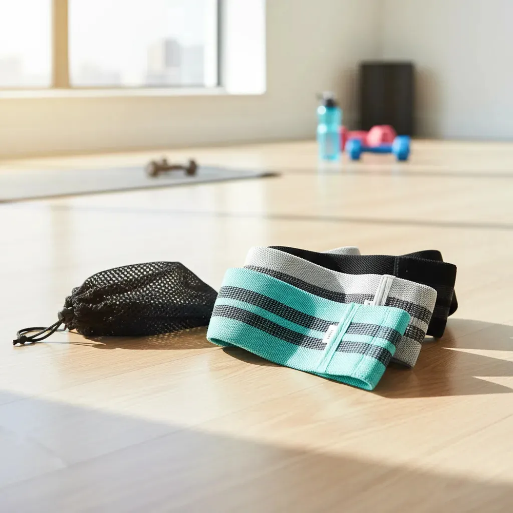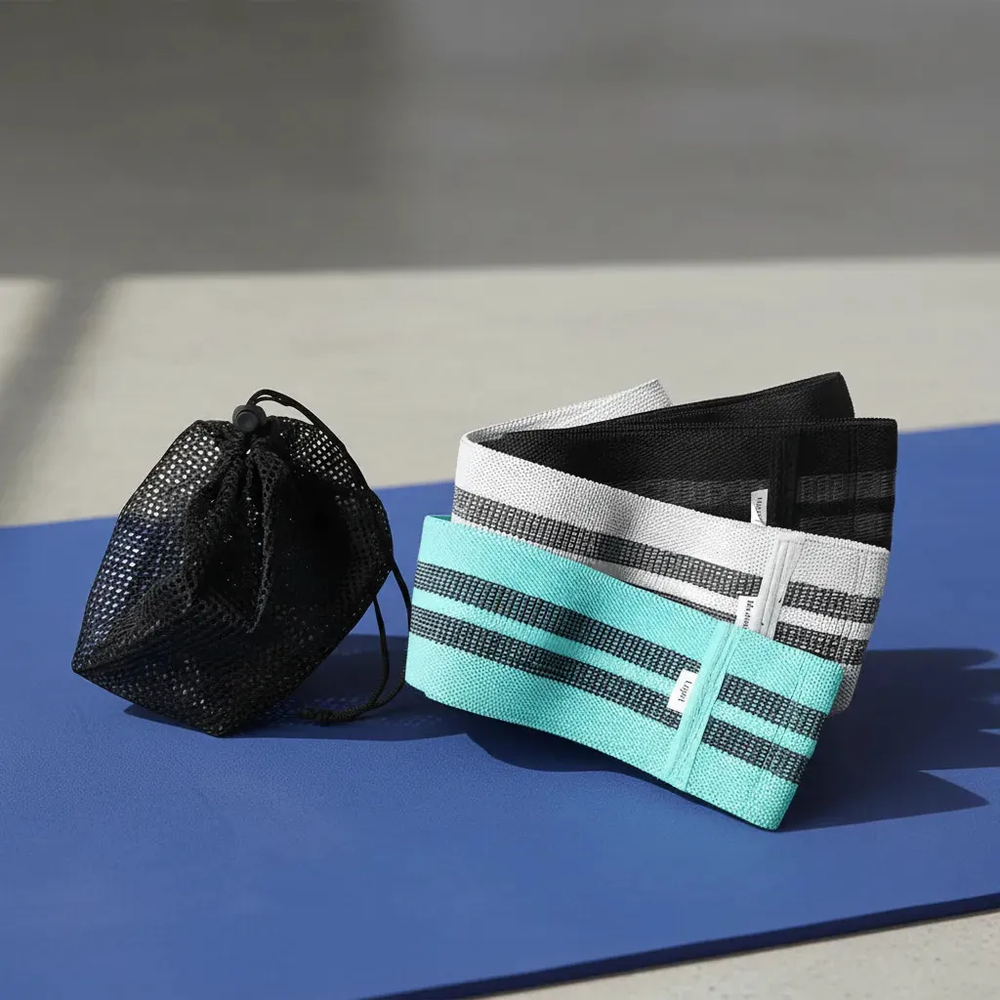 Cada banda está fabricada en poliéster de alta calidad con tratamiento antideslizante, lo que garantiza un agarre seguro y cómodo durante cada ejercicio, evitando deslizamientos no deseados sobre la piel o la ropa. Su diseño ergonómico y fácil de transportar las convierte en el accesorio ideal para entrenar en casa, en el gimnasio o llevarlas contigo de viaje.