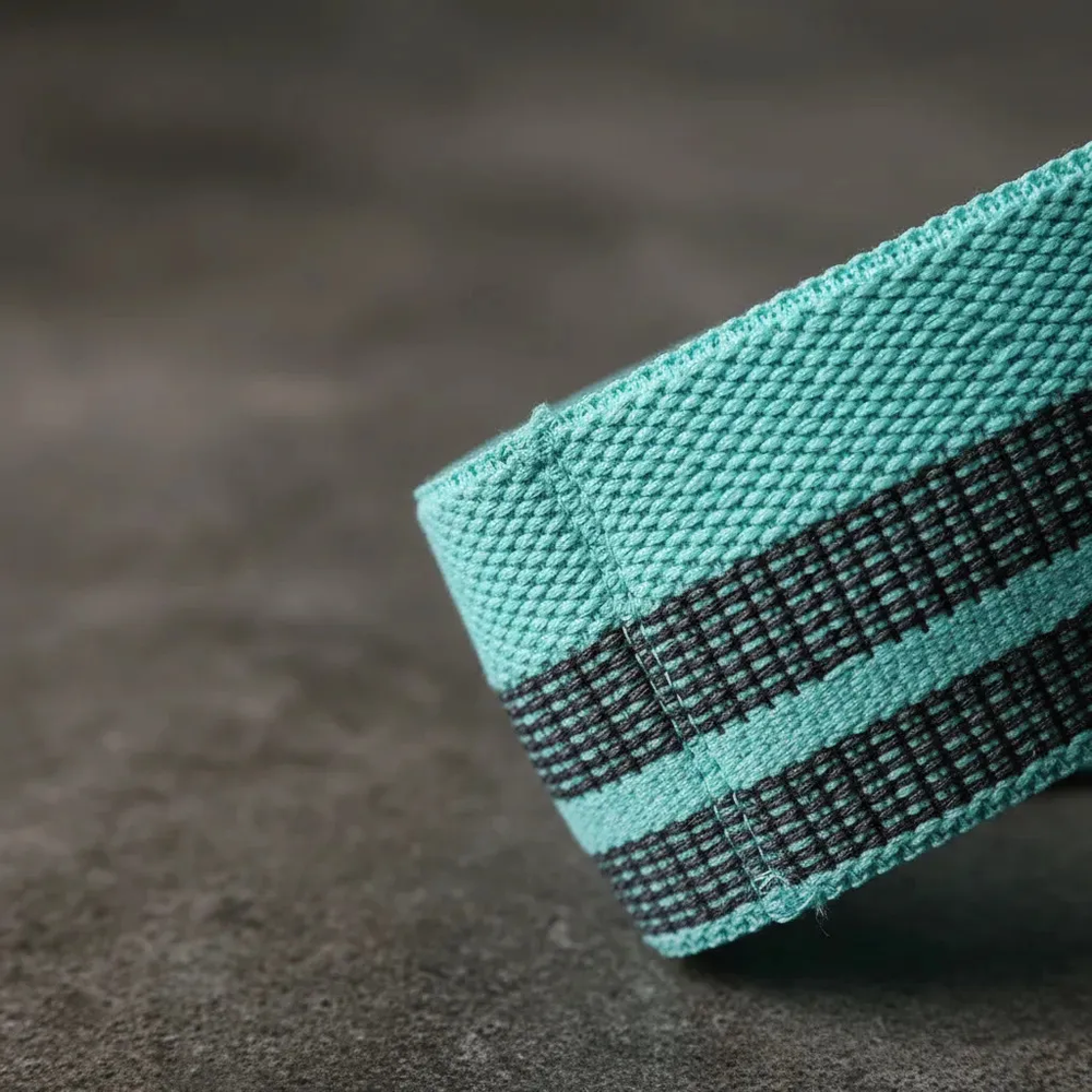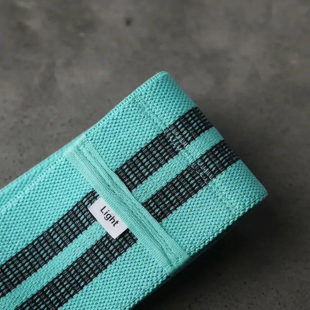 Banda color Agua (Turquesa): Resistencia de 9 kg – Longitud de 33 cm. Ideal para principiantes, calentamiento, trabajo de glúteos, piernas y brazos con menor intensidad.