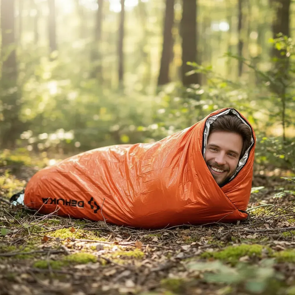 El Saco de Dormir Dehuka ha sido diseñado para brindarte seguridad y confort en entornos desafiantes. Ya sea para una excursión de camping, una emergencia o como parte de tu kit de supervivencia, este saco liviano y compacto es el aliado perfecto.