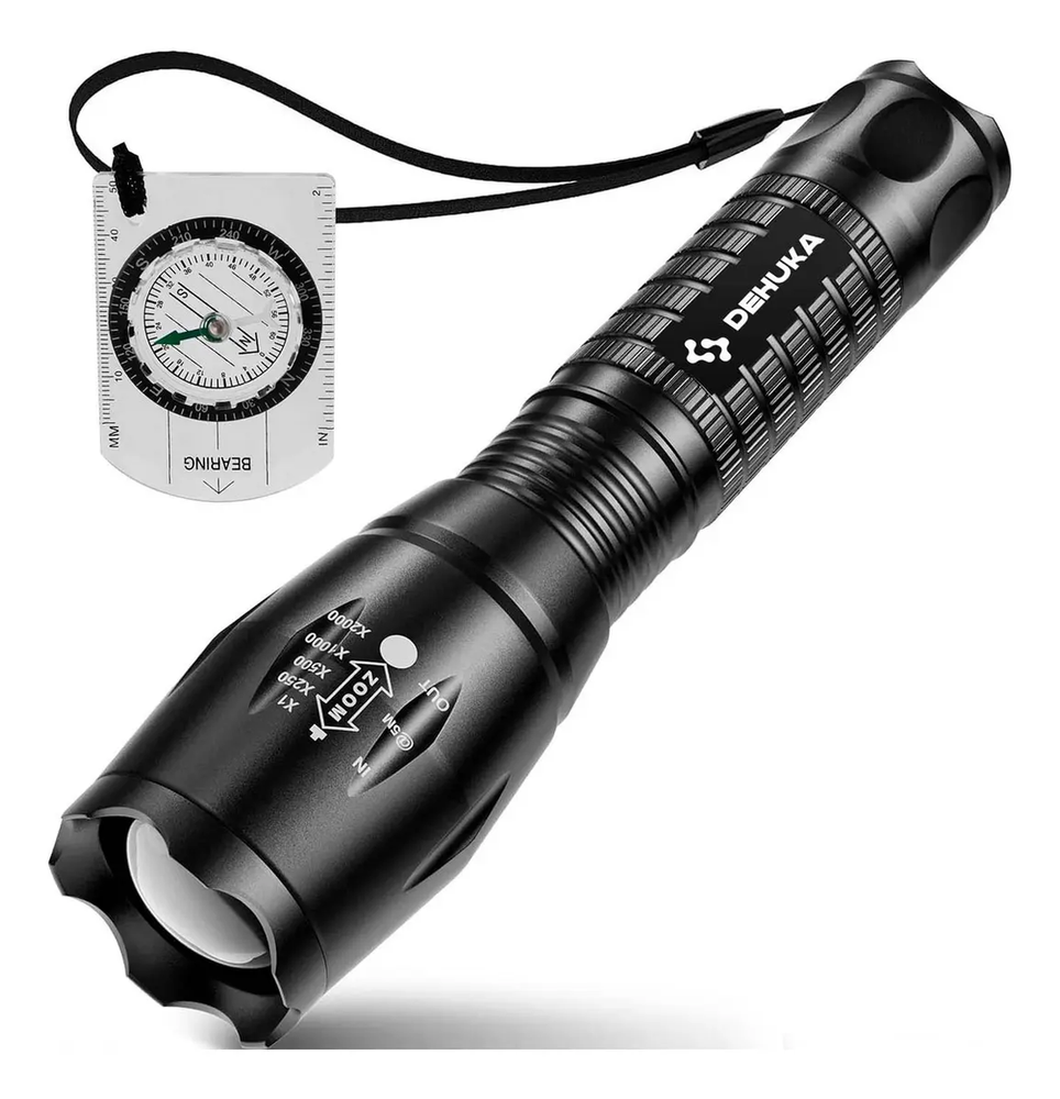 ¡Mantén todo iluminado con la linterna táctica recargable Dehuka, ideal para tus aventuras al aire libre!