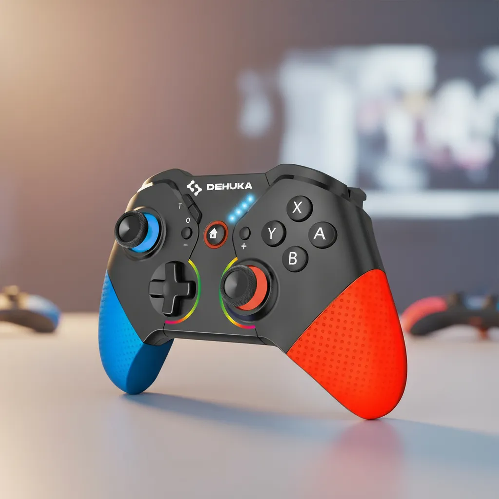 🔄 Conexión Gaming Sin Límites: Bluetooth 5.2 + receptor USB 2.4GHz incluido 🎮 Diseño Pro Gamer: Forma ergonómica con sensor de movimiento 6D integrado ⚡ Energía Duradera: Batería de 600mAh (hasta 10h de juego) ✨ Experiencia Premium: Iluminación RGB personalizable (16.8M colores) 🛡️ Construcción Robusta: Resistente a 5M de pulsaciones, Estructura en ABS reforzado + detalles en cuero sintético 🎯 Precisión Arcade: 4 botones traseros programables ⚡ Configuración Instantánea: Compatibilidad nativa con Steam/GeForce NOW