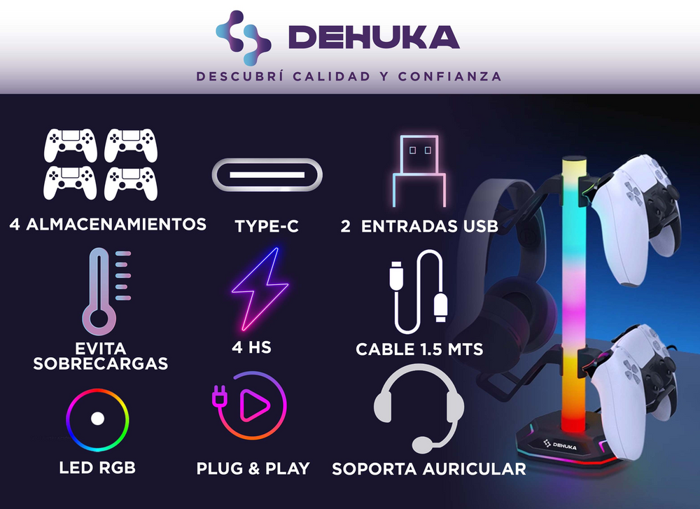 UPC 759382494647 - Para organizar y cargar tus mandos de PS5, PS4 o Xbox mientras añade un toque de estilo gamer a tu setup..