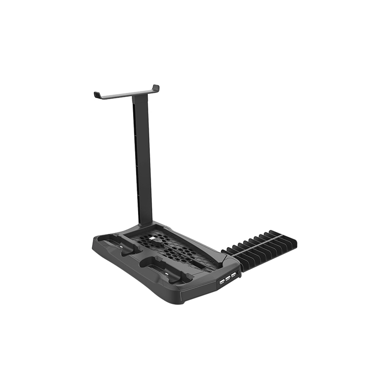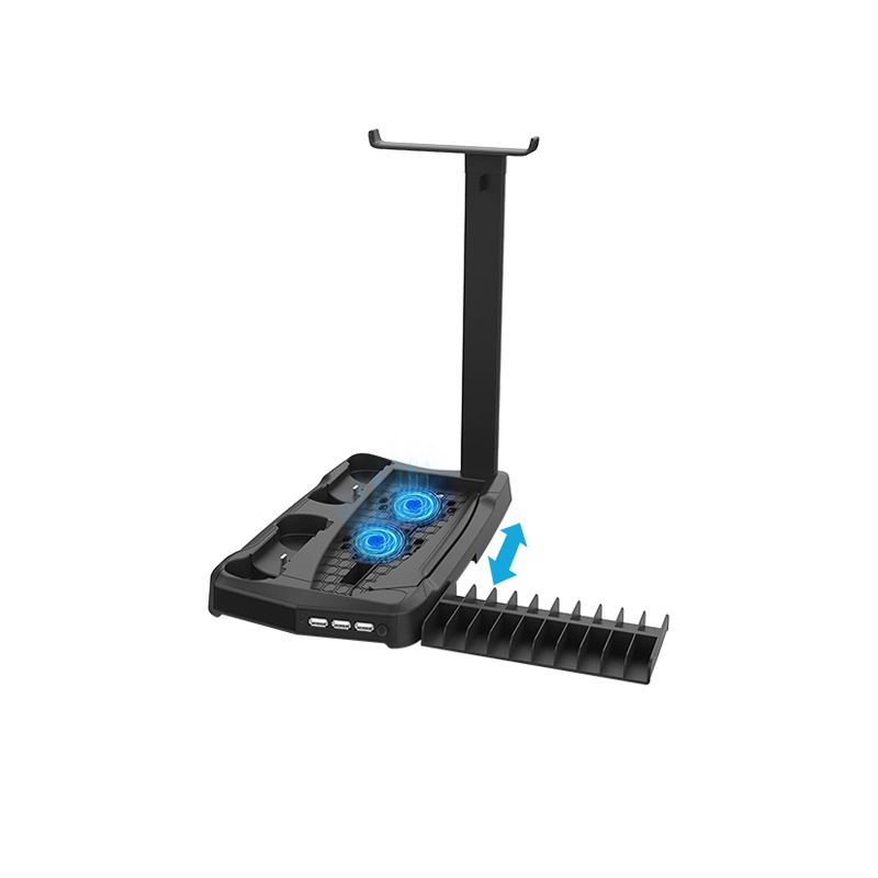 Maximiza el rendimiento y la organización de tu consola con la Base de Enfriamiento Dehuka. Este accesorio multifunción está diseñado para ofrecer una refrigeración eficiente mediante ventiladores silenciosos que previenen el sobrecalentamiento durante tus largas sesiones de juego. Además, cuenta con un puerto de carga integrado para mantener tus mandos listos para la acción.