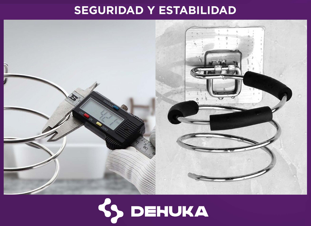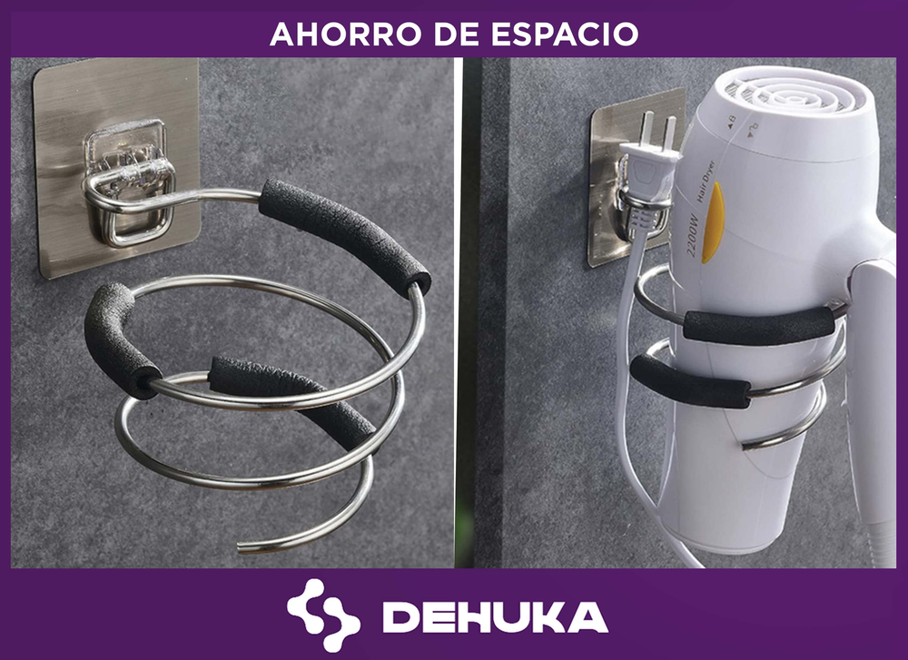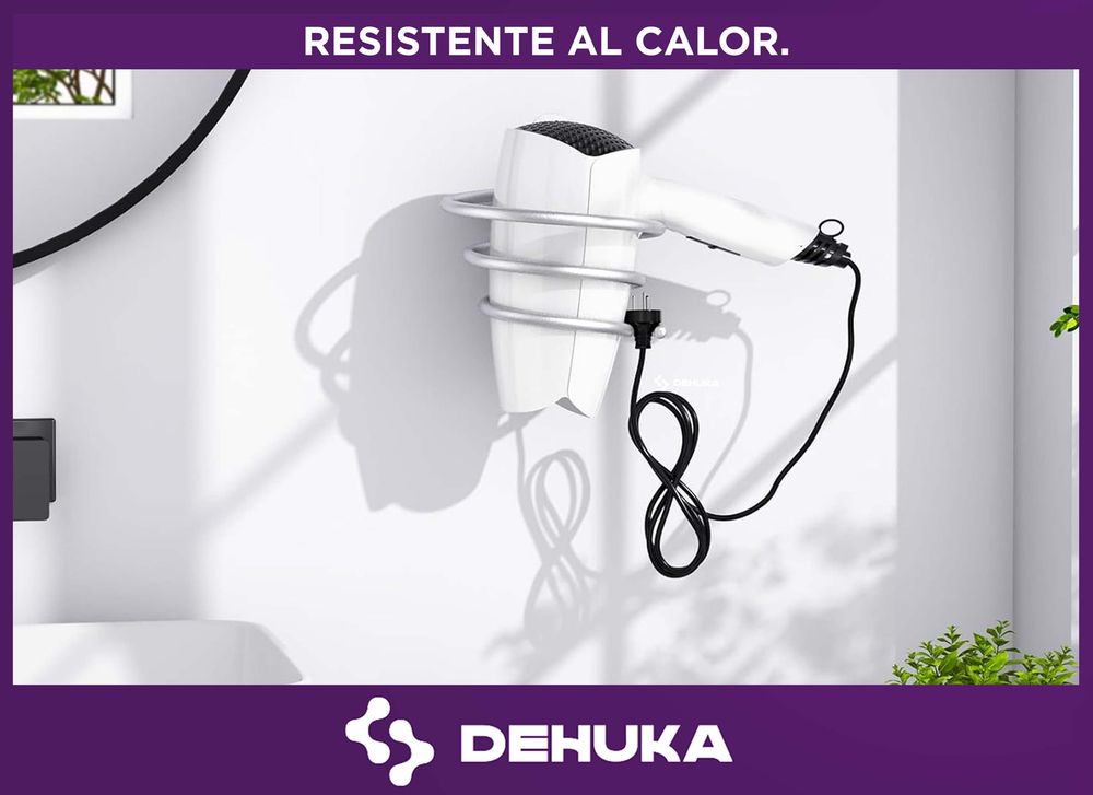 Resistente al calor, este soporte protege tanto tu secador como tu baño al mantenerlo firme y seguro luego del uso. Apto para secadores de distintos modelos, ofrece una alternativa elegante y funcional para ahorrar espacio y mantener el orden sin obras ni complicaciones.