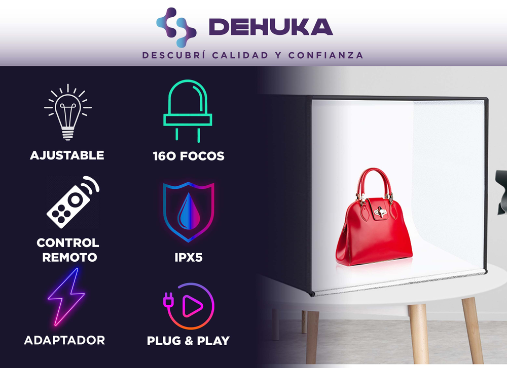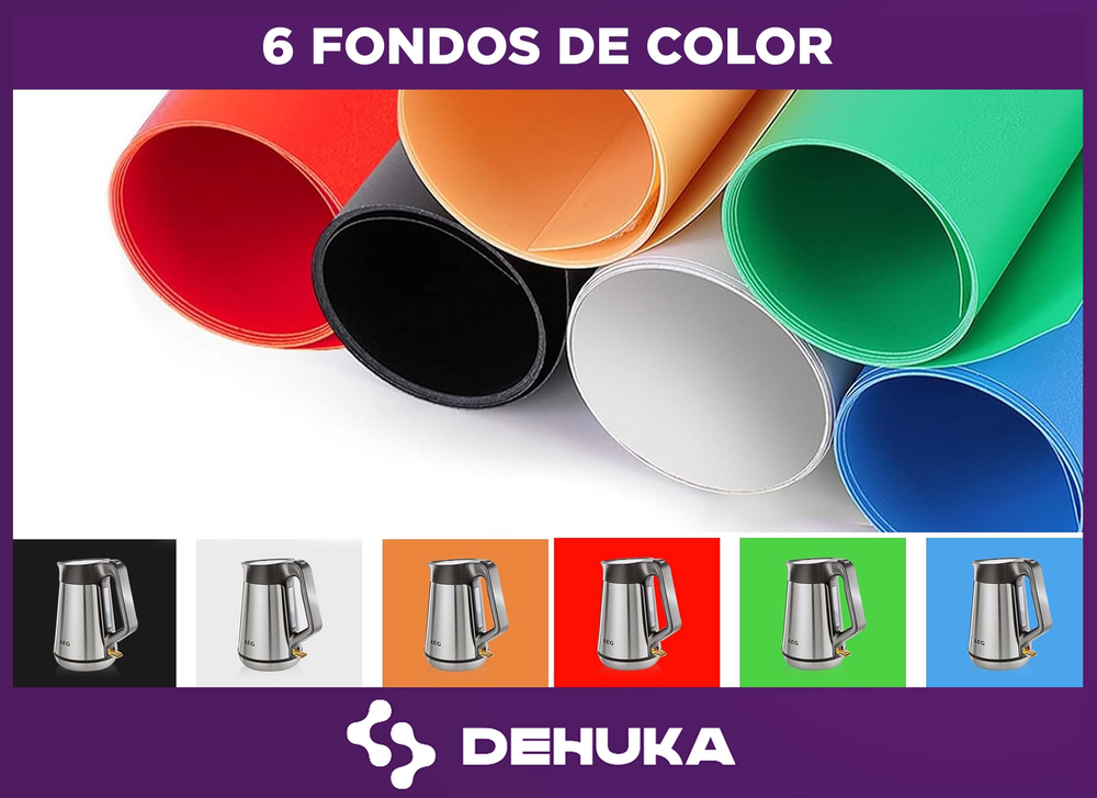 ¿Buscás tomar fotos de productos impecables sin sombras ni distracciones? Este kit de fondo portátil Dehuka incluye todo lo que necesitás: un soporte plegable con 3 fondos universales (negro, blanco y gris) para crear imágenes limpias y profesionales para tu e-commerce, redes sociales o proyectos creativos. ¡Plegable, ligero y listo para usar en minutos!