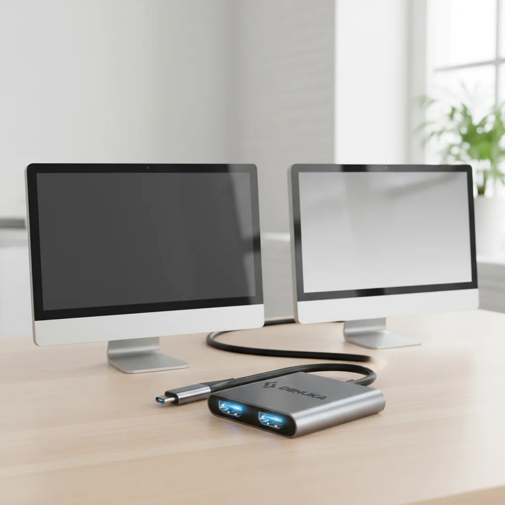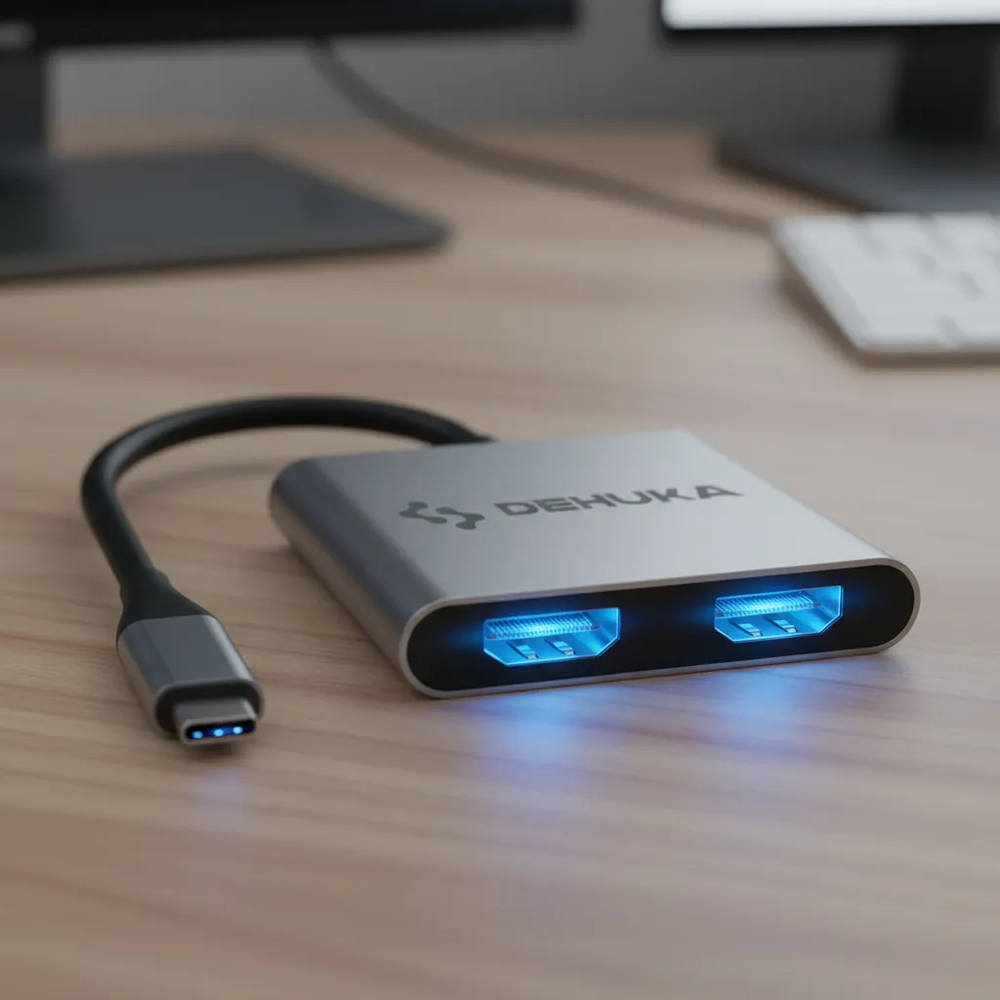 El adaptador Dehuka USB-C a HDMI permite conectar dos monitores de forma simultánea a tu PC, MacBook Pro o Air, con soporte para resoluciones Full HD y 4K. Es ideal para ampliar el espacio de trabajo o realizar presentaciones en pantallas grandes.