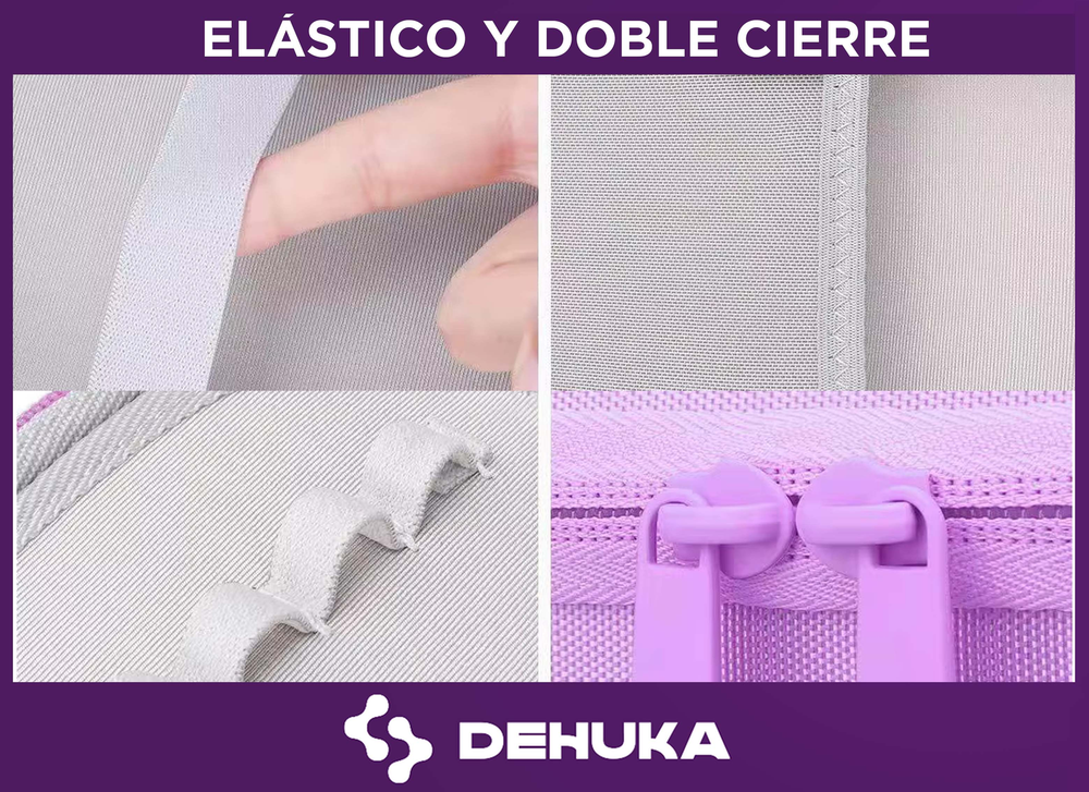 Cierre Seguro: Correa de velcro o cremallera (según modelo) que mantiene todo en su lugar.